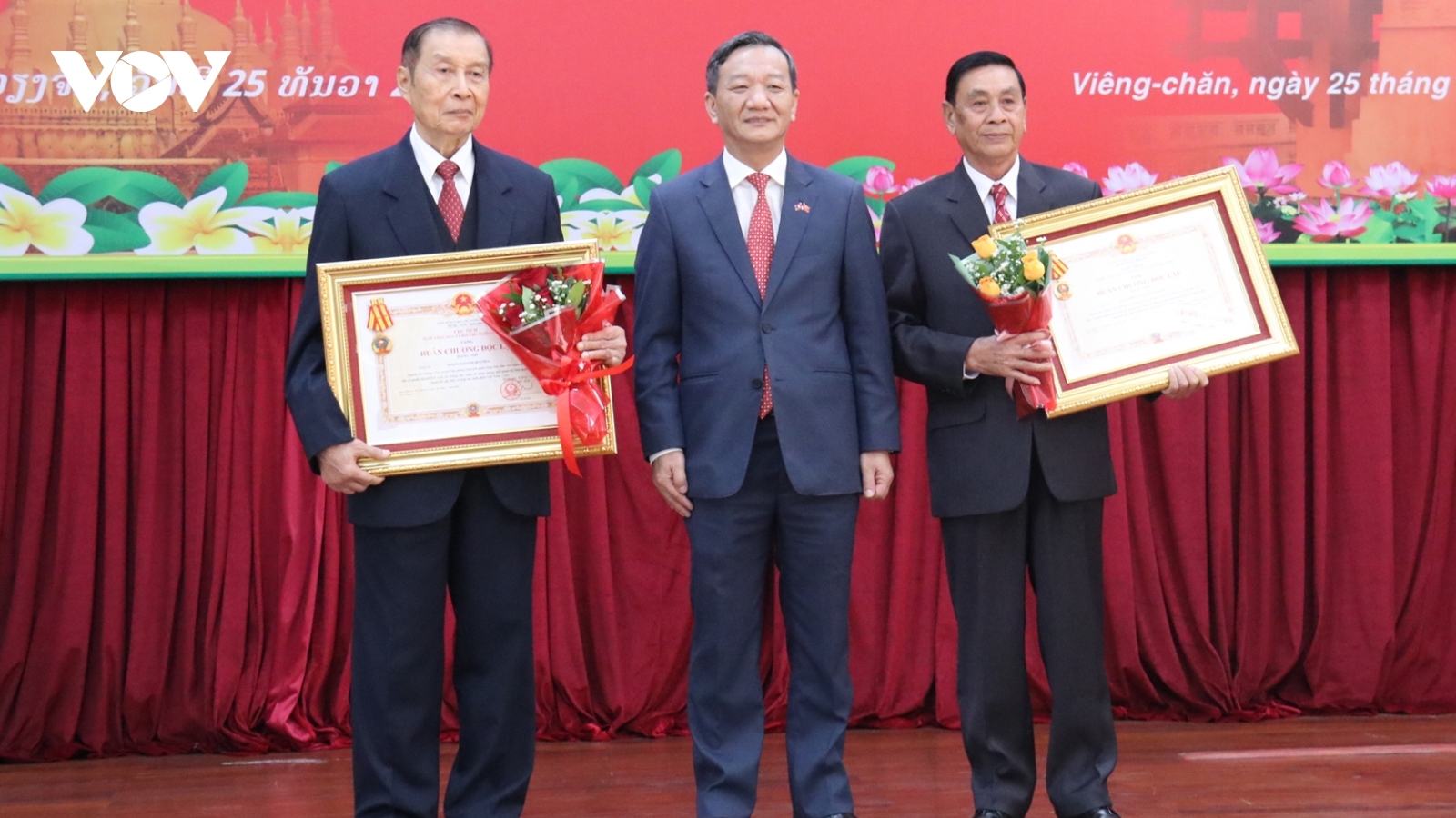 VOV.VN - Thừa ủy quyền của Chủ tịch nước và Chủ nhiệm Văn phòng Chủ tịch nước Việt Nam, ngày 25/12, Đại sứ quán Việt Nam tại Lào đã tổ chức lễ trao tặng Huân, Huy chương của Việt Nam dành tặng cho các tập thể và cá nhân Văn phòng Chủ tịch nước Lào.