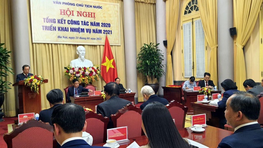 VOV.VN - Chiều 21/1/2021, tại Phủ Chủ tịch, Tổng Bí thư, Chủ tịch nước Nguyễn Phú Trọng dự Hội nghị tổng kết công tác năm 2020; triển khai nhiệm vụ năm 2021 của Văn phòng Chủ tịch nước.