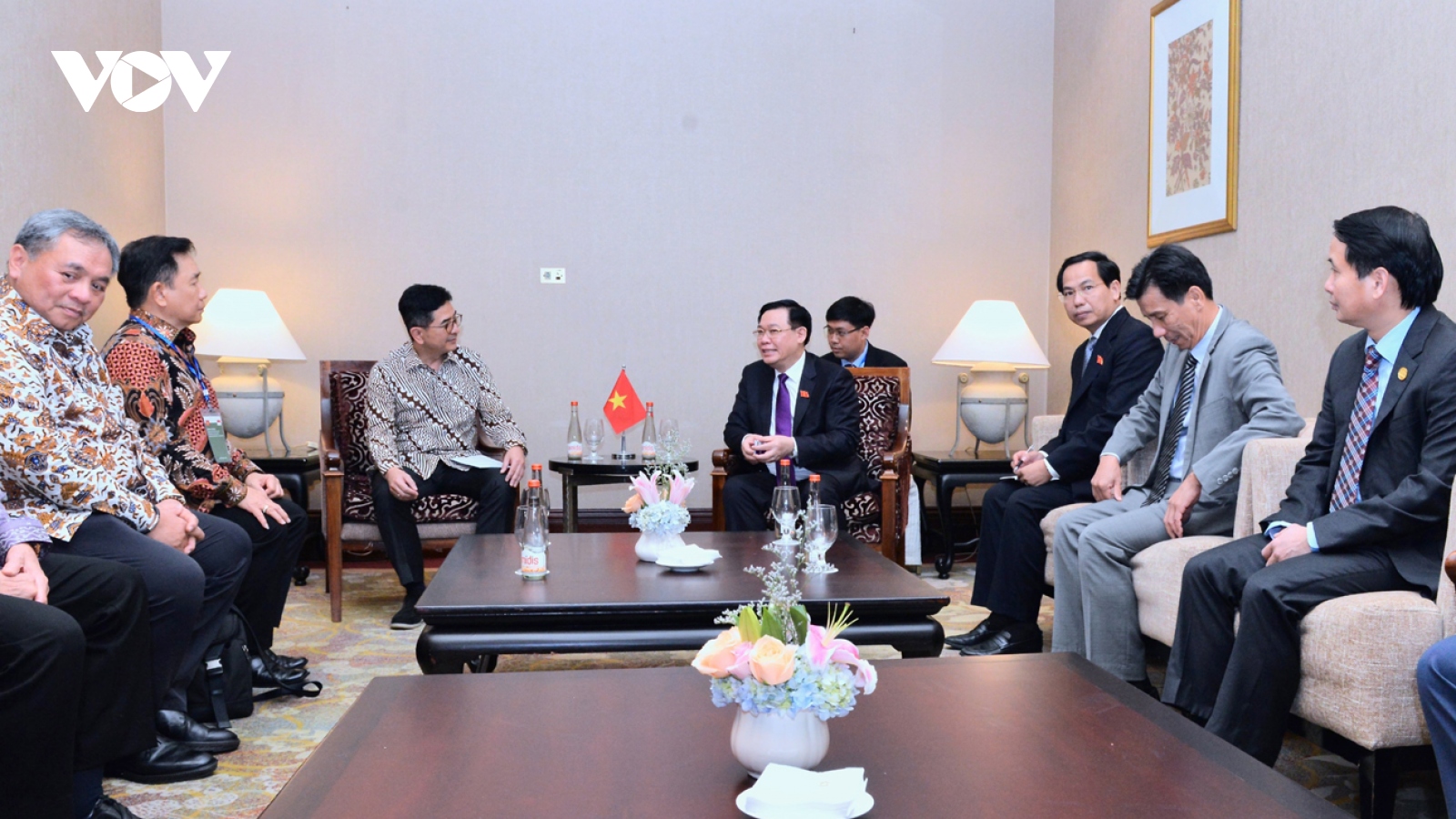 VOV.VN - Chiều 5/8, trong khuôn khổ chuyến thăm chính thức Indonesia, Chủ tịch Quốc hội Vương Đình Huệ tiếp Chủ tịch Phòng Thương mại và Công nghiệp Indonesia M. Arsjad Rasjid P. M.