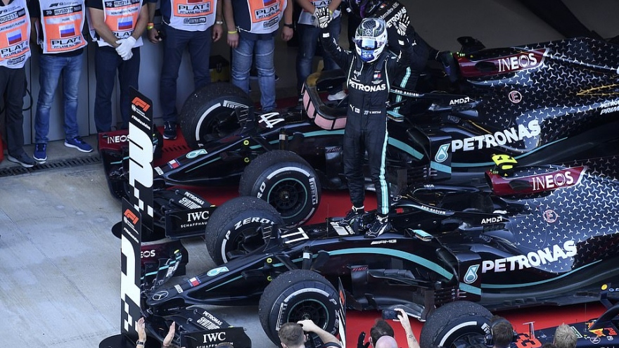 VOV.VN - Tại chặng F1 Nga, lỗi xuất phát ở vòng đua thử của Lewis Hamilton buộc anh chịu hai án phạt cộng 5 giây và chỉ về đích thứ 3 trong khi Valtteri Bottas về nhất và Max Verstappen của đội Red Bull về thứ hai. Kết quả này cũng đồng nghĩa Lewis Hamilton không thể cân bằng kỷ lục 91 chiến thắng của huyền thoại Michael Schumacher.