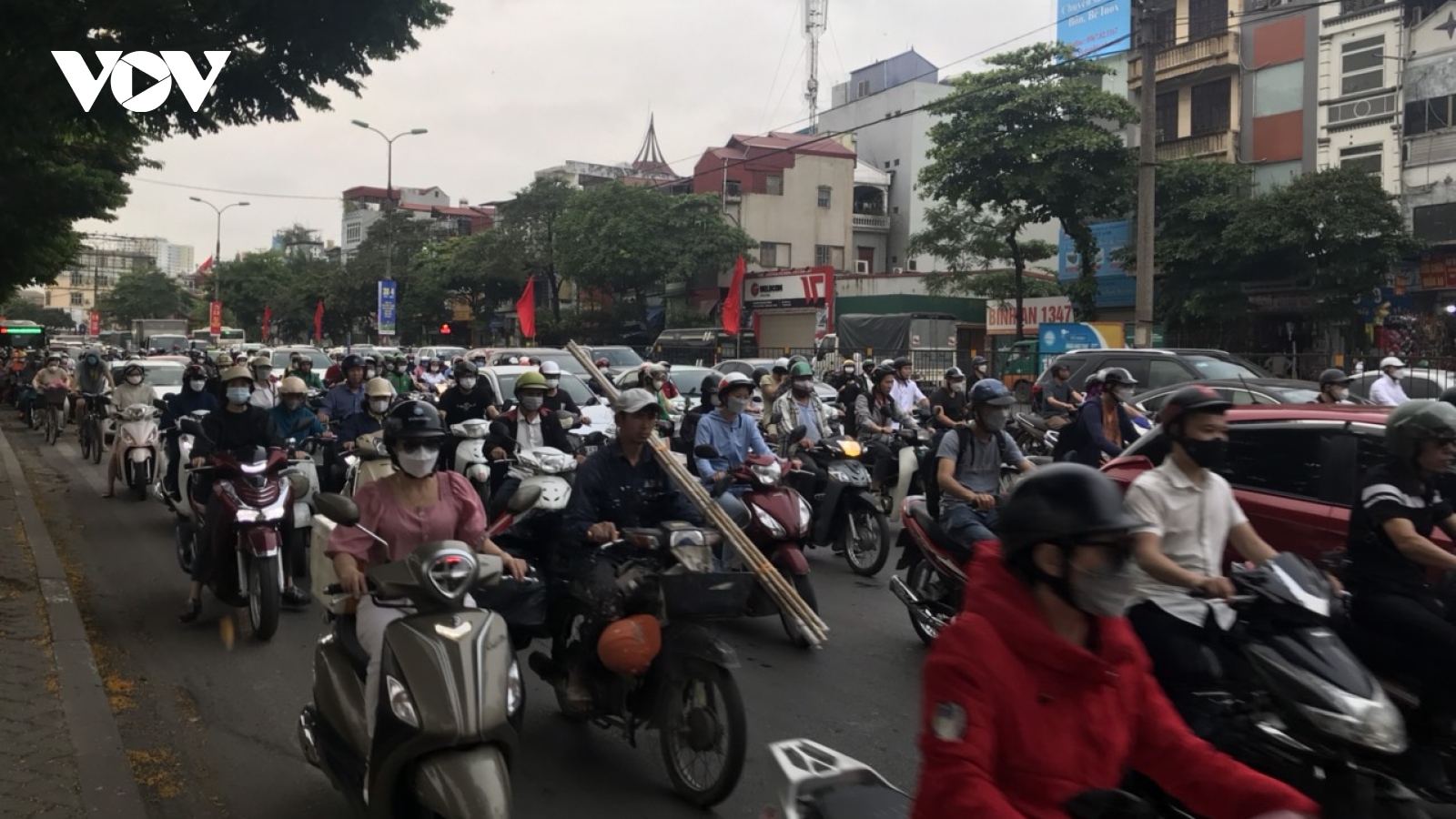 VOV.VN - Từ đầu giờ chiều nay (28/4), nhiều người dân về quê, đi du lịch từ sớm của kỳ nghỉ lễ Giỗ Tổ Hùng Vương, 30/4 và 1/5 kéo dài 5 ngày nên các tuyến đường cửa ngõ TP. Hà Nội đã đông đúc, ùn tắc tại các cửa ngõ, đường vành đai 3.