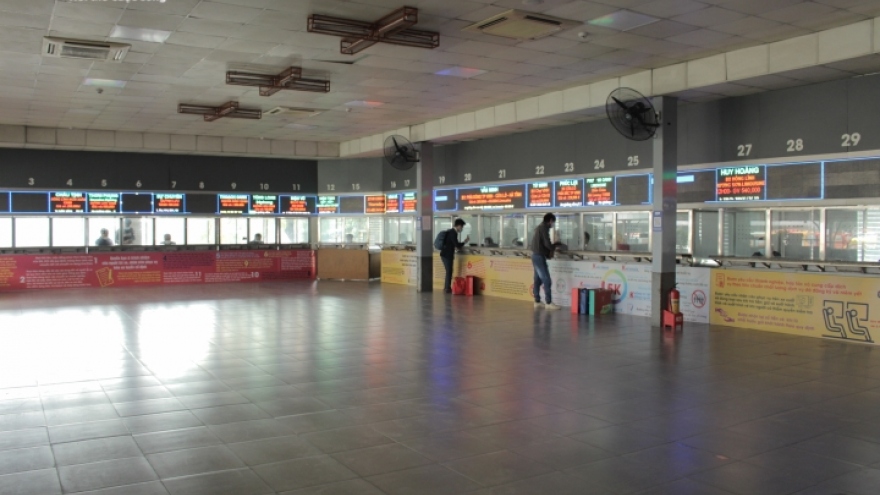 VOV.VN - Dịch COVID-19 khiến các bến xe lớn ở Hà Nội vắng khách chưa từng thấy, không còn cảnh xe ra vào tấp nập, người người xếp hàng mua vé về quê ăn Tết như mọi năm.