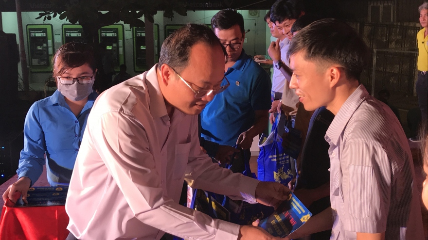 VOV.VN - Tối qua (26/1), hơn 800 tấm vé máy bay, vé xe, tàu hoả được Liên đoàn Lao động TP.HCM trao tặng cho các công nhân đang làm việc trong các doanh nghiệp ở khu Chế xuất và khu Công nghiệp thành phố.