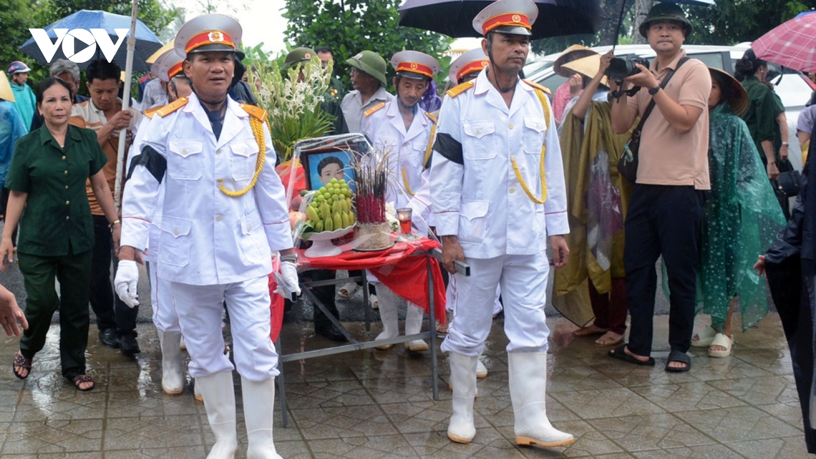 VOV.VN - Sáng 21/10, Đảng uỷ, HĐND, UBND, MTTQ xã Đông Nam, huyện Đông Sơn, tỉnh Thanh Hóa phối hợp với Hội Hỗ trợ gia đình Liệt sĩ (HTGĐLS) tỉnh Thanh Hóa cùng thân nhân gia đình tổ chức lễ truy điệu và an táng liệt sĩ Lê Viết Hào và Ứng Văn Lệ tại Nghĩa trang Liệt sĩ của địa phương.