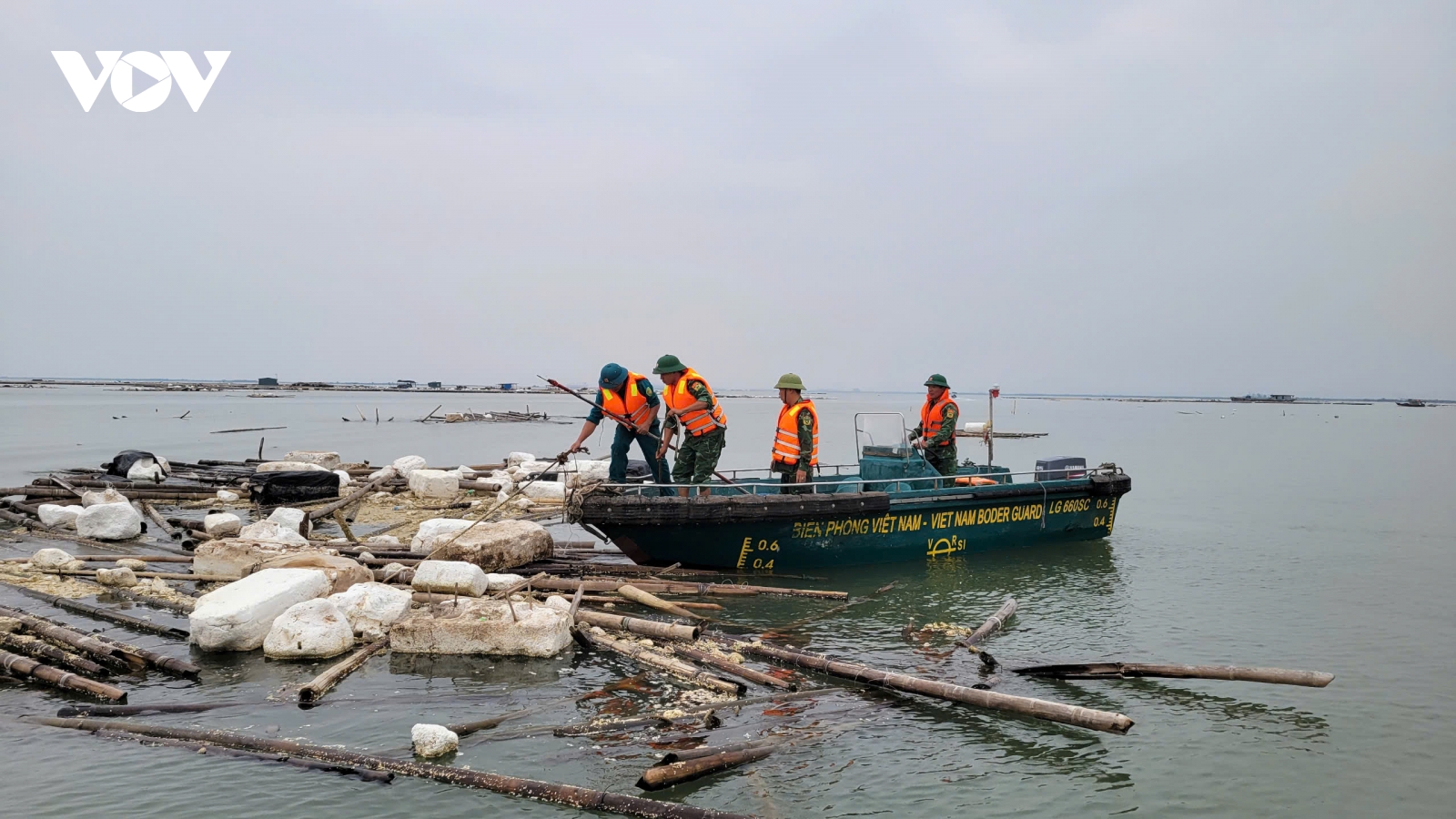 VOV.VN - Sau đợt ra quân cao điểm vệ sinh môi trường từ cuối tháng 9, lượng rác trên biển thuộc thị xã Quảng Yên, tỉnh Quảng Ninh đã giảm đáng kể. Tuy nhiên, một số diện tích mặt biển vẫn còn khá nhiều rác thải là bè mảng tre nứa, phao xốp... cản trở giao thông thủy và gây khó khăn cho sản xuất của ngư dân.