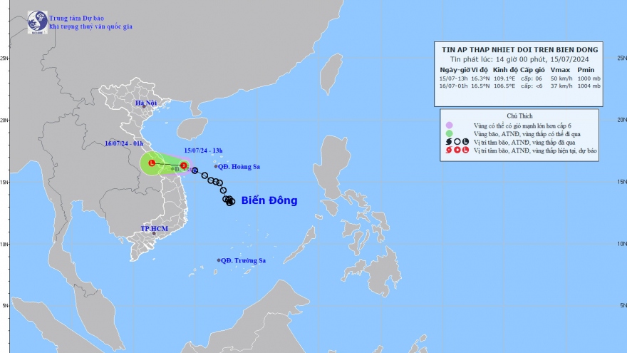 VOV.VN - Do tác động của áp thấp nhiệt đới, từ chiều nay đến ngày 17/7, sẽ có mưa lớn tại khu vực đồng bằng và ven biển Bắc Bộ, Hòa Bình, Thanh Hóa đến Quảng Trị, lượng mưa phổ biến từ 60-120mm.