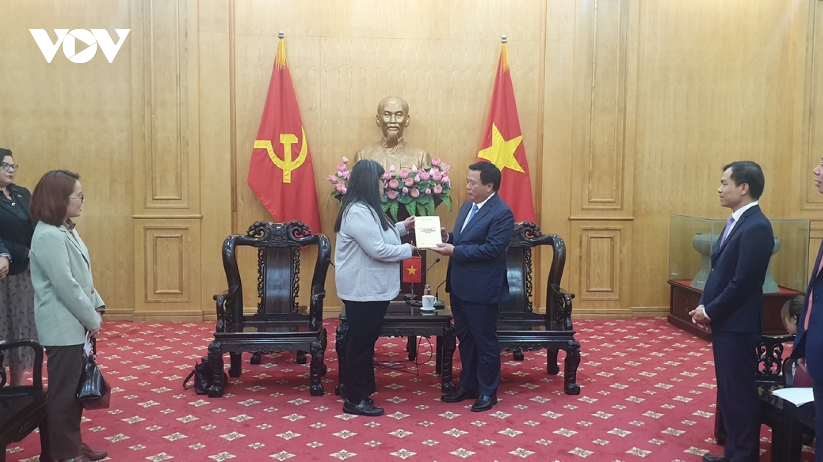 VOV.VN - Giám đốc Học viện Chính trị quốc gia Hồ Chí Minh Nguyễn Xuân Thắng và Thứ trưởng Bộ Ngoại giao Venezuela Tatiana Pugh Moreno thống nhất đẩy mạnh hợp tác trên các lĩnh vực cụ thể theo thỏa thuận đã ký kết, trọng tâm là đào tạo cán bộ, nghiên cứu và tư vấn chính sách.