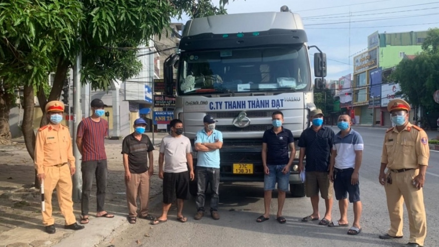 VOV.VN - Kiểm tra chiếc xe đầu kéo, tổ công tác phát hiện ngoài tài xế có 6 người trốn trên xe hòng “thông chốt” ra khỏi địa bàn TP.Vinh, tỉnh Nghệ An.