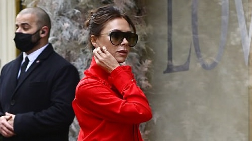 VOV.VN - Victoria Beckham trở thành "tâm điểm" của sự chú ý khi diện đầm đỏ rực tự thiết kế, mang giày cao gót màu hồng nổi bật, khoe dáng thanh mảnh ra phố ở London ngày 7/12.
