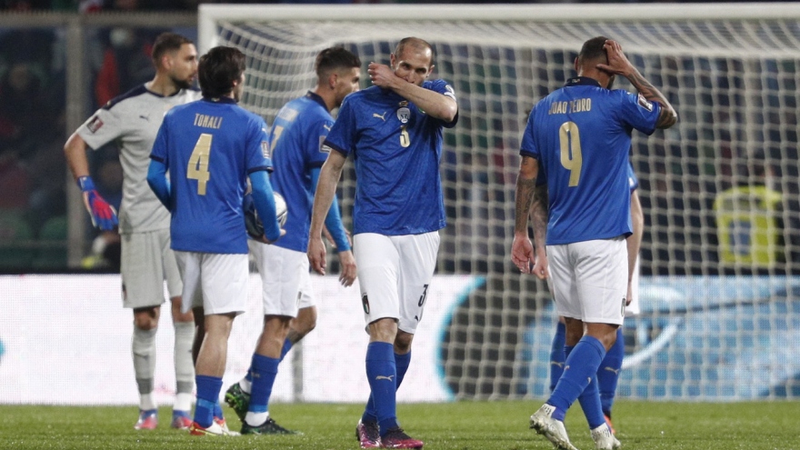 VOV.VN - Thất bại 0-1 trước ĐT Bắc Macedonia bởi bàn thua ở phút bù giờ khiến ĐT Italia lỡ hẹn với VCK World Cup 2022. Đây là lần thứ hai liên tiếp họ "ngồi nhà" xem World Cup.