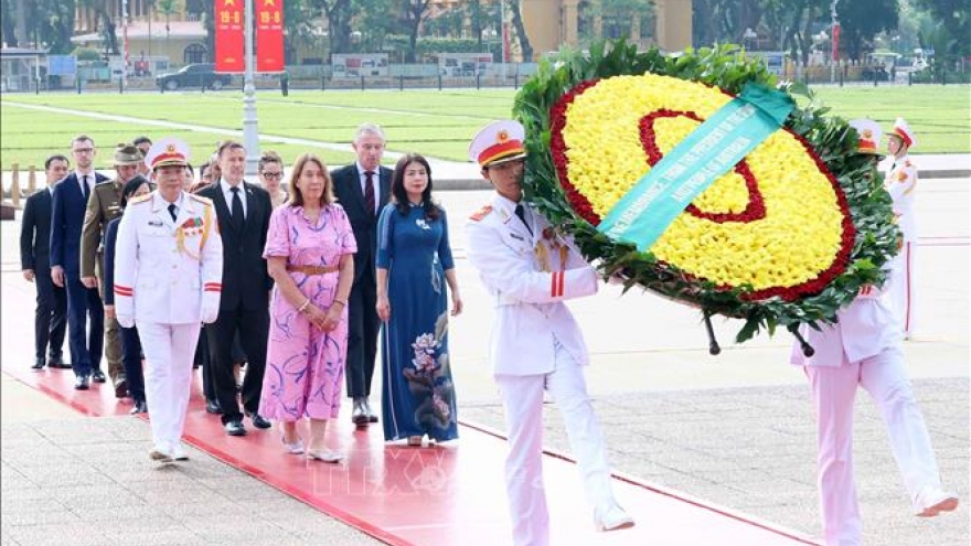 Trong chương trình thăm chính thức tại Việt Nam, sáng 26/8/2024, tại Hà Nội, Chủ tịch Thượng viện Australia Sue Lines đến đặt vòng hoa và vào Lăng viếng Chủ tịch Hồ Chí Minh.