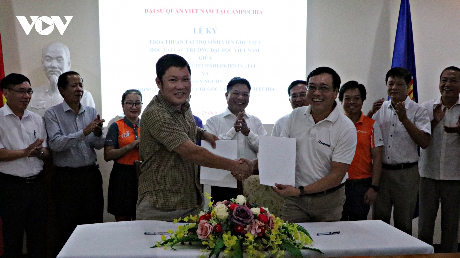 VOV.VN - Chiều nay (28/10), lễ ký kết Thỏa thuận tài trợ cho sinh viên người Campuchia gốc Việt đang học tập tại Việt Nam đã được tổ chức tại trụ sở Đại sứ quán Việt Nam tại Campuchia.