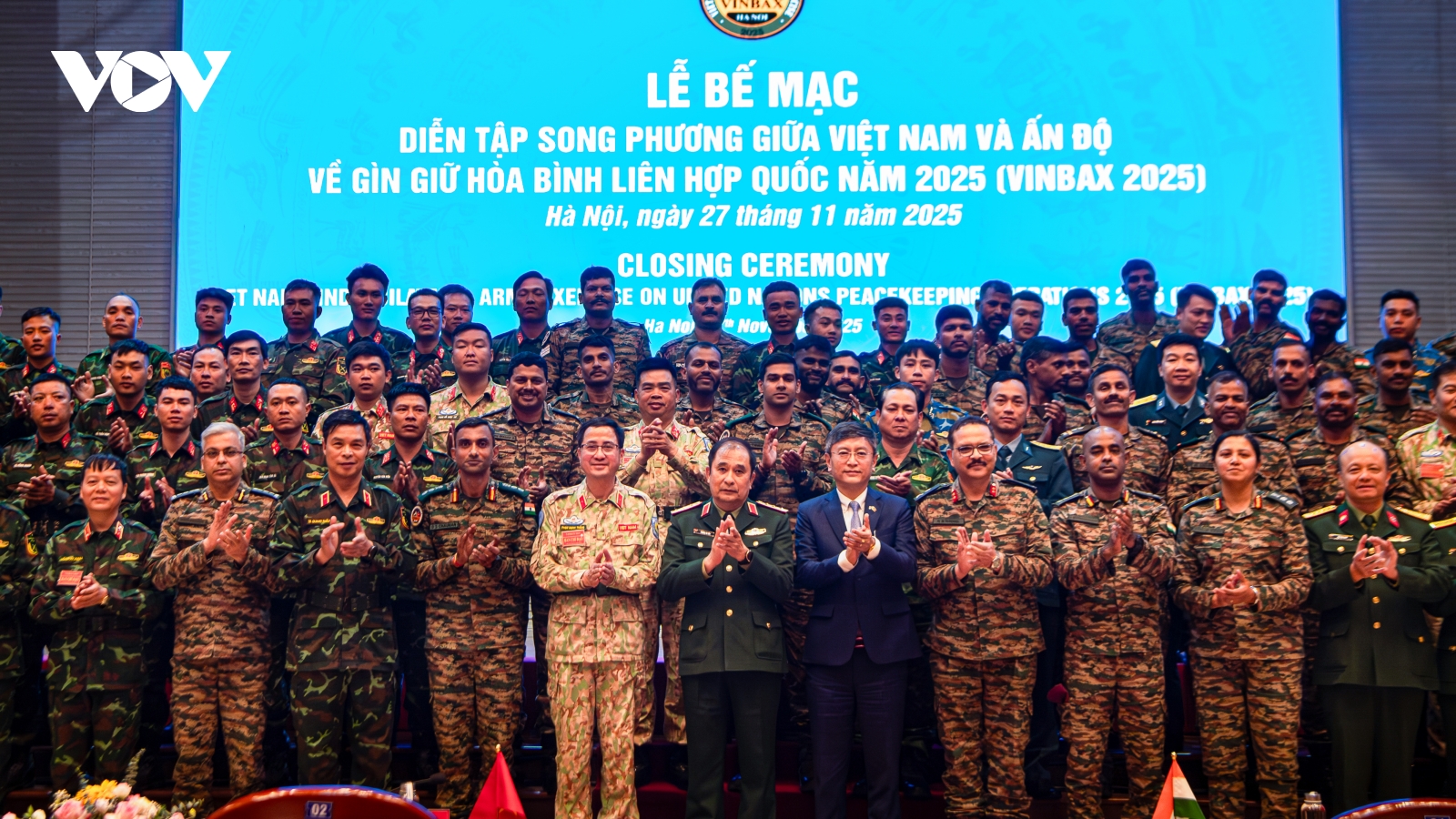 VOV.VN - Diễn tập song phương giữa Việt Nam và Ấn Độ về gìn giữ hòa bình Liên Hợp Quốc năm 2025 (VINBAX 2025) đã kết thúc thành công tốt đẹp vào chiều 27/11.