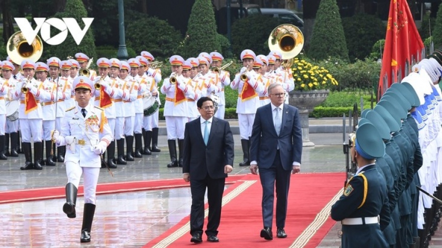 VOV.VN - Trong chuyến thăm chính thức Australia đang diễn ra, Thủ tướng Chính phủ Phạm Minh Chính và Thủ tướng Australia Anthony Albanese đã ký nâng cấp quan hệ lên Đối tác chiến lược toàn diện. Australia cho rằng, khuôn khổ quan hệ mới phản ánh sự tin cậy chính trị và tin tưởng lẫn nhau giữa hai nước.