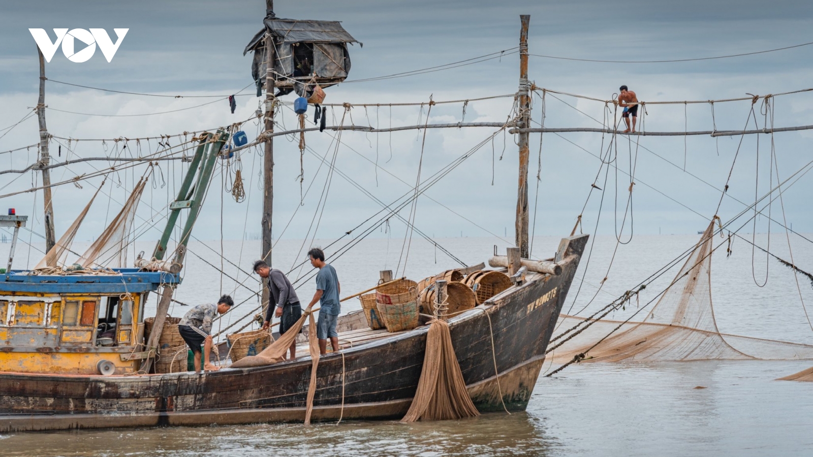 VOV.VN - Nghề "đáy hàng khơi" đã trở thành "hồn cốt mưu sinh" của hàng trăm hộ dân tại xã Đông Hải (Vĩnh Long) suốt hơn 100 năm qua, vào mỗi mùa nước lớn, ngư dân lại giăng buồng đáy để đón tôm cá, họ chấp nhận bám trụ hàng chục ngày trên căn chòi canh nhỏ bé giữa biển khơi. Hình ảnh vất vả của họ là bức vẽ sinh động nhất của cuộc sống mưu sinh và tình yêu lao động.