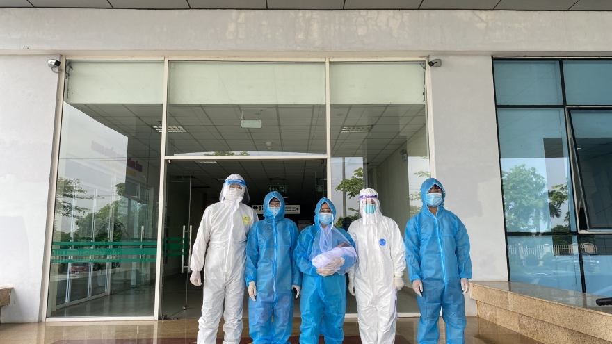 VOV.VN - Sau hơn 10 ngày điều trị hậu phẫu về sản khoa đồng thời chữa bệnh COVID-19, sáng 29/5, chị Đ.T.T (23 tuổi) cùng chồng và con gái đã được xuất viện để trở về nhà.