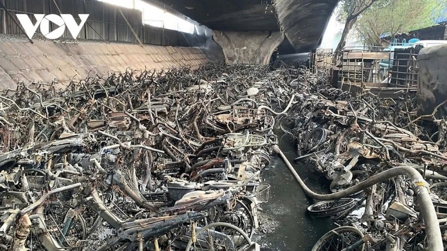 VOV.VN - Nhiều ngày sau vụ cháy lớn tại bãi giữ xe vi phạm dưới chân cầu Vĩnh Tuy (Hà Nội), hiện trường vẫn ngổn ngang, hàng trăm xe máy cháy rụi. Gầm cầu ám khói, bê tông bong tróc lộ cốt thép. Lực lượng chức năng tiếp tục kiểm đếm, ghi nhận thiệt hại. Thủ tướng Chính phủ có công điện yêu cầu Chủ tịch Hà Nội làm rõ trách nhiệm.