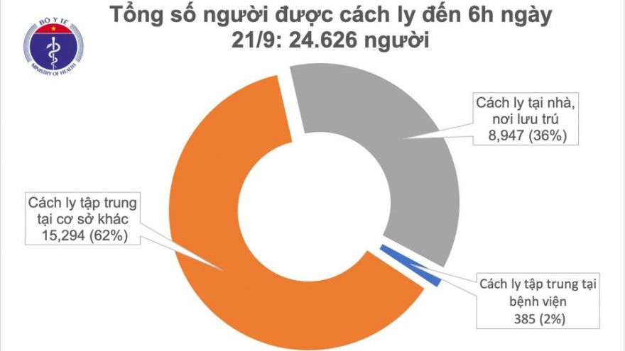 VOV.VN -Đến 6h sáng 21/9, Việt Nam ghi nhận không có ca mắc Covid-19. Hiện Việt Nam có tổng cộng 1.068 ca, trong đó có 691 ca mắc do lây nhiễm trong nước.
