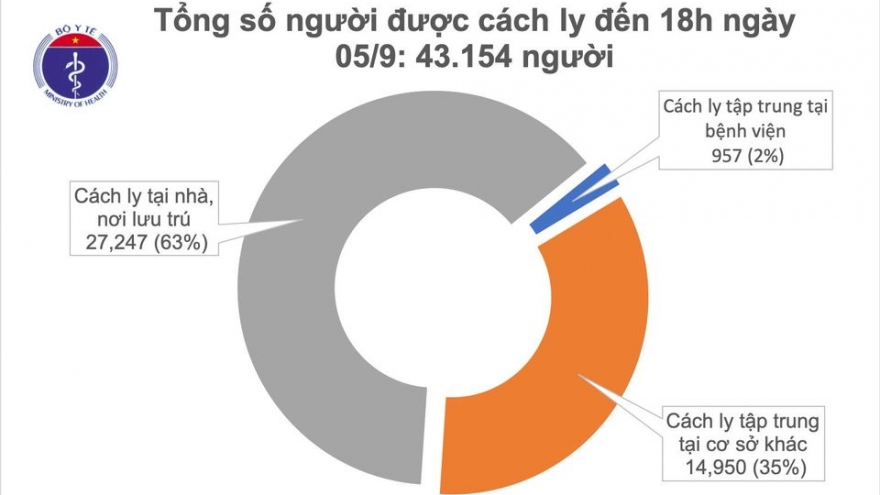 VOV.VN - Tính đến 18h chiều 5/9, Việt Nam có tổng cộng 1.049 ca mắc Covid-19, trong đó, 691 ca do lây nhiễm trong nước. Số lượng ca mắc mới tính từ ngày 25/7 đến nay là 551 người.