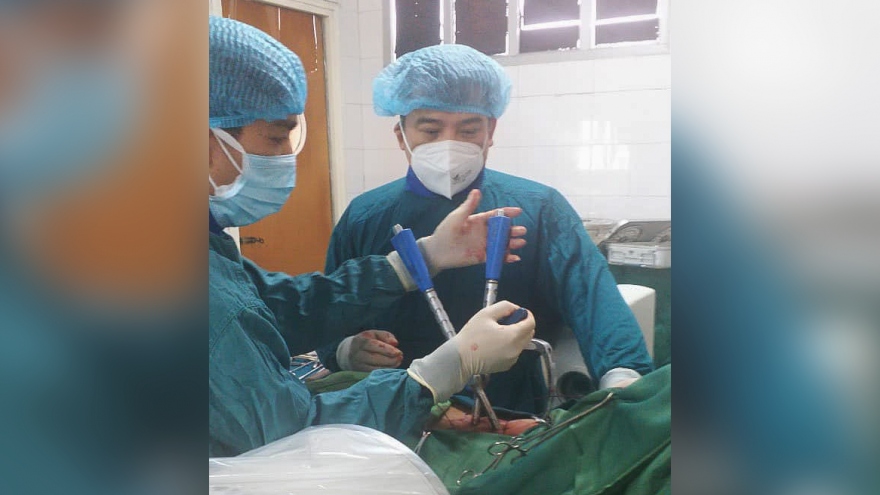 VOV.VN - Tỉnh Điện Biên vừa phẫu thuật thành công cho 1 bệnh nhân bằng phương pháp bắt vít qua da để cố định cột sống, dưới sự định vị của máy C-AM (X-quang di động).