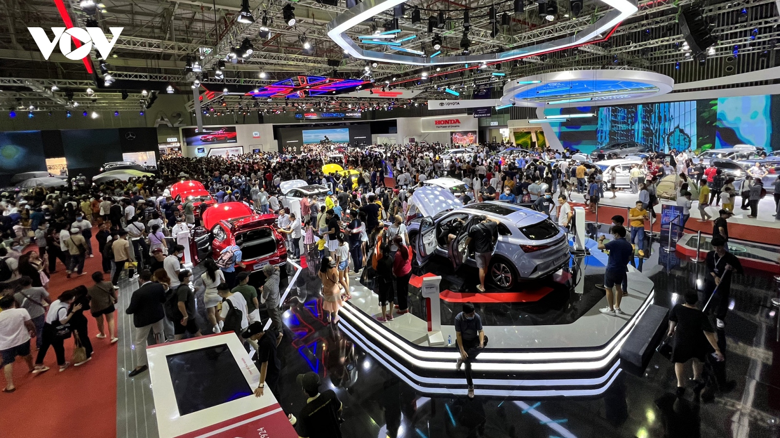 VOV.VN - Trong hai ngày cuối tuần qua (29-30/10), Triển lãm ô tô Việt Nam 2022 đã đón hàng nghìn lượt người thăm quan, nhiều gian hàng rơi vào tình trạng quá tải.