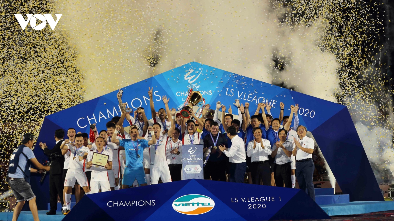 VOV.VN - Cuộc đua vô địch V-League 2020 chỉ còn là sự cạnh tranh giữa Hà Nội FC và Viettel. Dưới đây là những kịch bản có thể xảy ra ở vòng đấu cuối cùng.