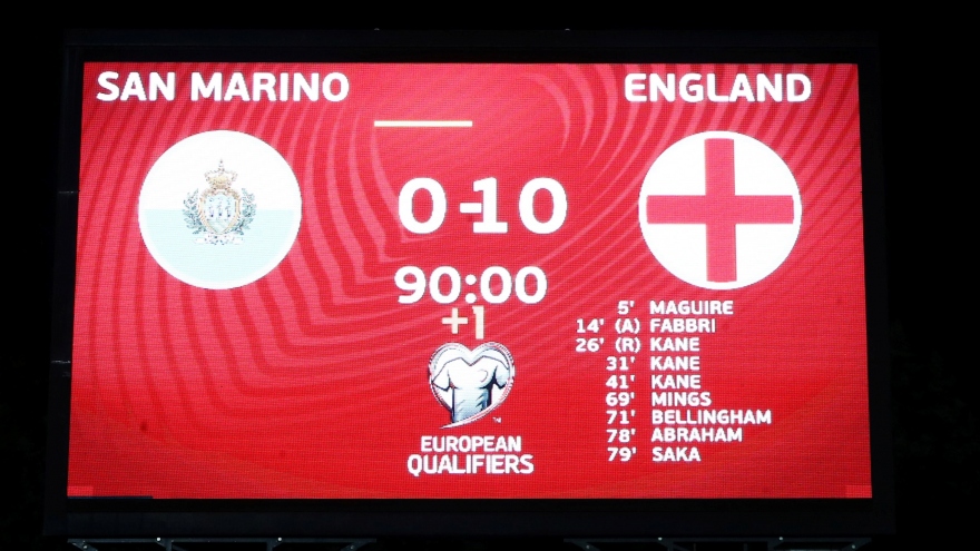 VOV.VN - ĐT Anh giành vé dự VCK World Cup 2022 sau chiến thắng 10-0 trước San Marino ở lượt trận thứ 9 bảng I vòng loại World Cup 2022 khu vực châu Âu.