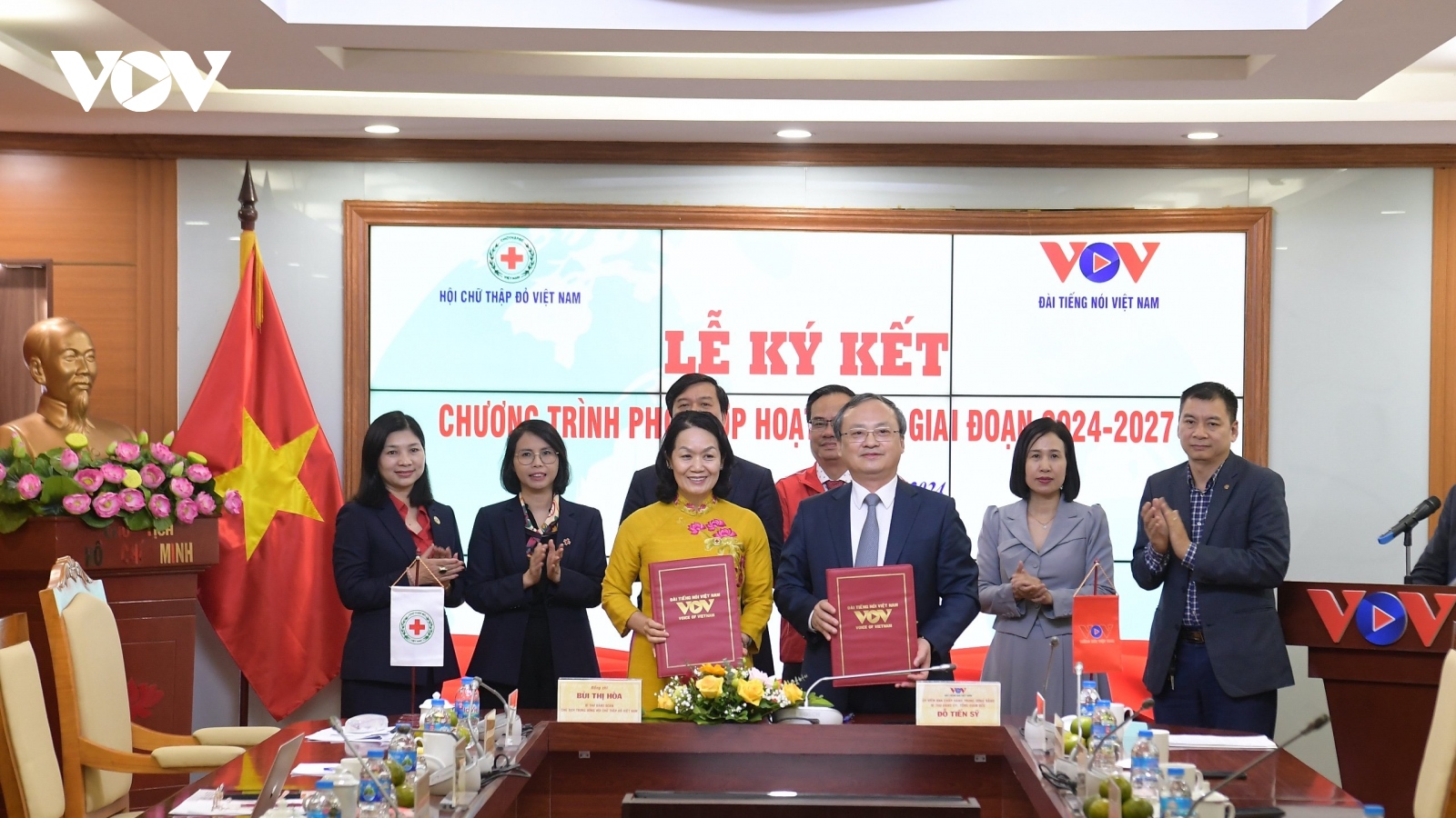 VOV.VN - Chiều 19/3, tại Trung tâm Phát thanh Quốc gia (58 Quán Sứ, Hà Nội) diễn ra Lễ ký kết chương trình phối hợp hoạt động, giai đoạn 2024-2027 giữa Đài Tiếng nói Việt Nam (VOV) và Trung ương Hội Chữ thập đỏ Việt Nam.