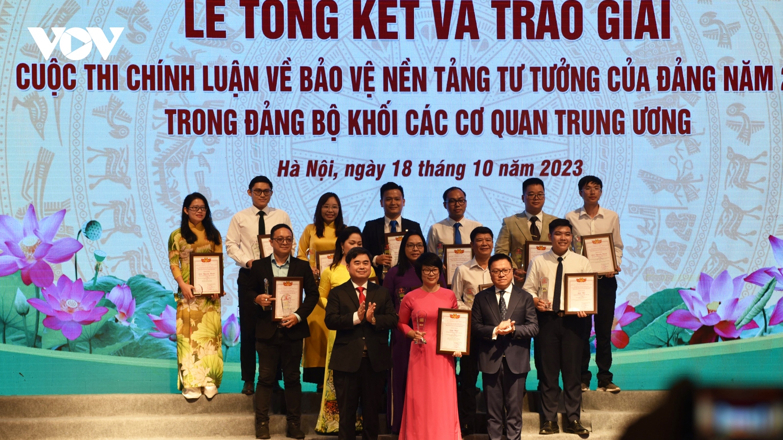 VOV.VN - Tham dự cuộc thi Cuộc thi chính luận về bảo vệ nền tảng tư tưởng của Đảng năm 2023, Đài Tiếng nói Việt Nam được trao 1 giải Nhất, 1 giải Ba, 1 giải Khuyến khích cho thể loại Phát thanh/truyền hình/video clip và 1 giải Ba thể loại Tạp chí.
