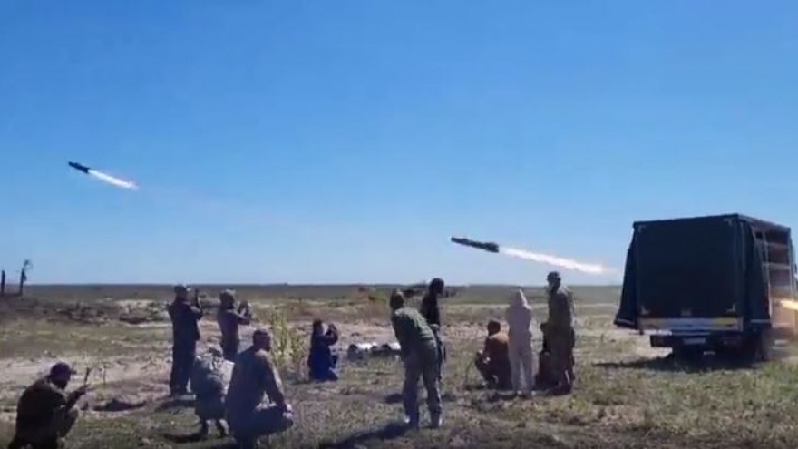 VOV.VN - Bộ Quốc phòng Nga vừa công bố video ghi cảnh các tên lửa hành trình siêu thanh Onyx chính xác cao được phóng dồn dập lên trời rồi bay về khu vực Odessa (Ukraine). Nga cho biết, các tên lửa này đã phá hủy một trung tâm hậu cần có chứa nhiều vũ khí của phương Tây, gồm UAV Bayraktar TB2.