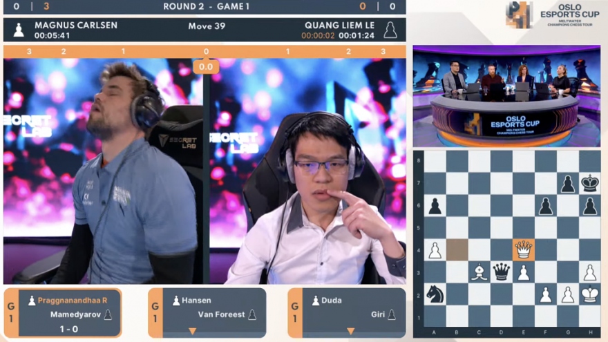 VOV.VN - Kỳ thủ số 1 Việt Nam Lê Quang Liêm đã giành chiến thắng 2,5-1,5 trước “vua cờ” Magnus Carlsen (Na Uy) tại vòng 2 giải cờ vua trực tuyến Oslo Esports Cup, diễn ra rạng sáng 24/4 theo giờ Hà Nội.