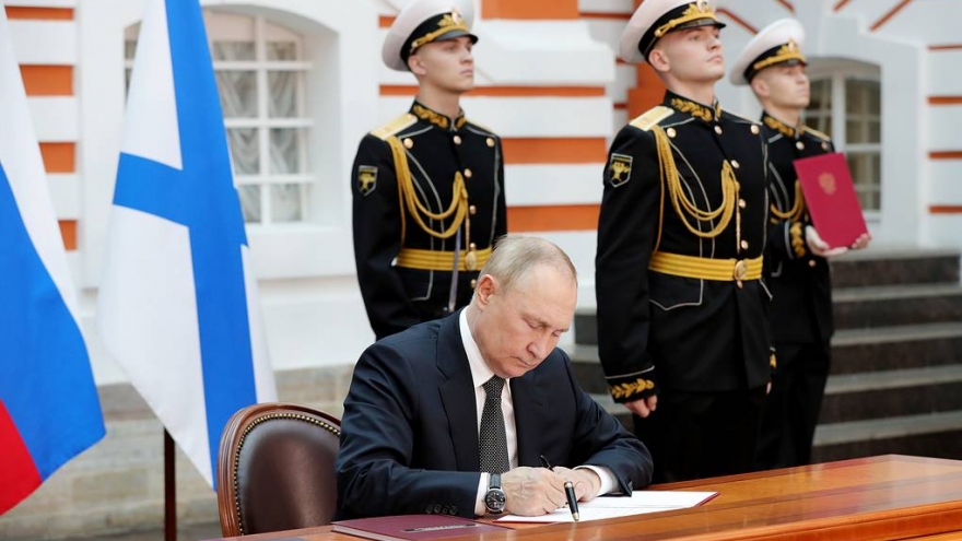 VOV.VN - Ngày 31/7, nhân dịp kỷ niệm Ngày thành lập Hải quân Nga, Tổng thống Vladimir Putin đã ký sắc lệnh phê chuẩn Học thuyết Hải quân mới, trong đó xác định mối đe dọa chính đối với Nga là “chiến lược của Mỹ nhằm thống trị các đại dương trên thế giới” và quá trình Đông tiến của NATO.