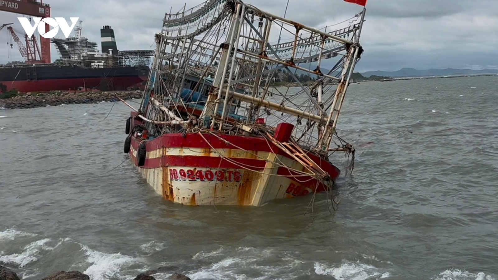 VOV.VN - Đồn Biên phòng Cửa khẩu cảng Dung Quất, Bộ đội Biên phòng tỉnh Quảng Ngãi vừa phối hợp hỗ trợ đưa 9 ngư dân trên tàu cá bị phá nước, mắc cạn vào bờ an toàn.