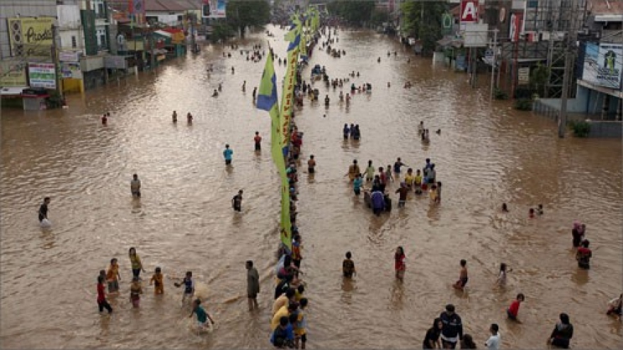 VOV.VN - Mưa lớn gây lũ lụt tại nhiều tỉnh trên toàn Indonesia những ngày vừa qua. Đặc biệt tại đảo Sumatera, lũ lụt khiến ít nhất 5 người thiệt mạng và hàng chục ngàn người phải sơ tán.