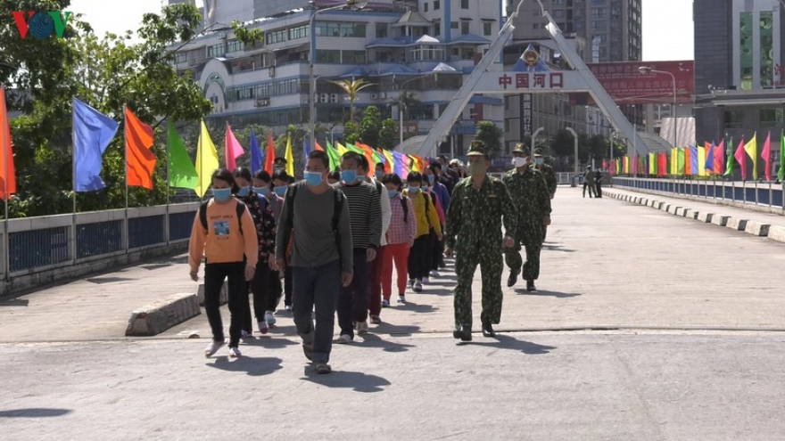 VOV.VN - Chiều 2/5, tại cửa khẩu quốc tế Lào Cai – Hà Khẩu, Đồn Biên phòng cửa khẩu Quốc tế Lào Cai tiếp nhận 30 người Việt Nam do phía Trung Quốc trao trả.
