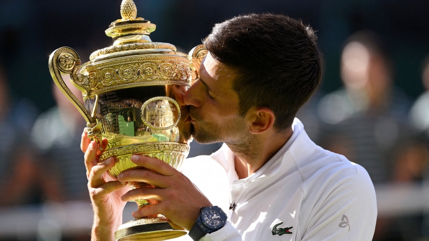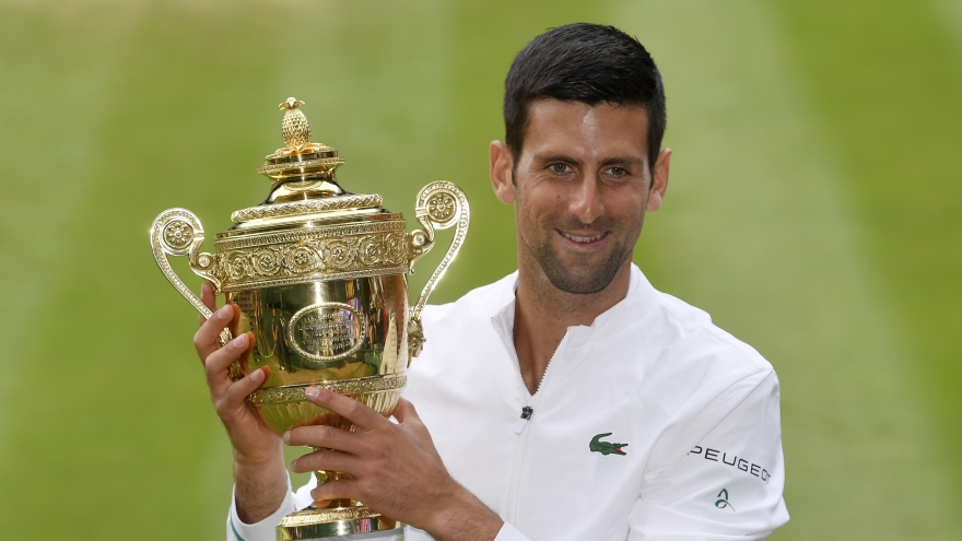 VOV.VN - Chiến thắng 3-1 trước Berrettini trong trận chung kết giúp Djokovic đăng quang ở nội dung đơn nam Wimbledon 2021, qua đó sánh ngang Federer và Nadal về số danh hiệu Grand Slam.