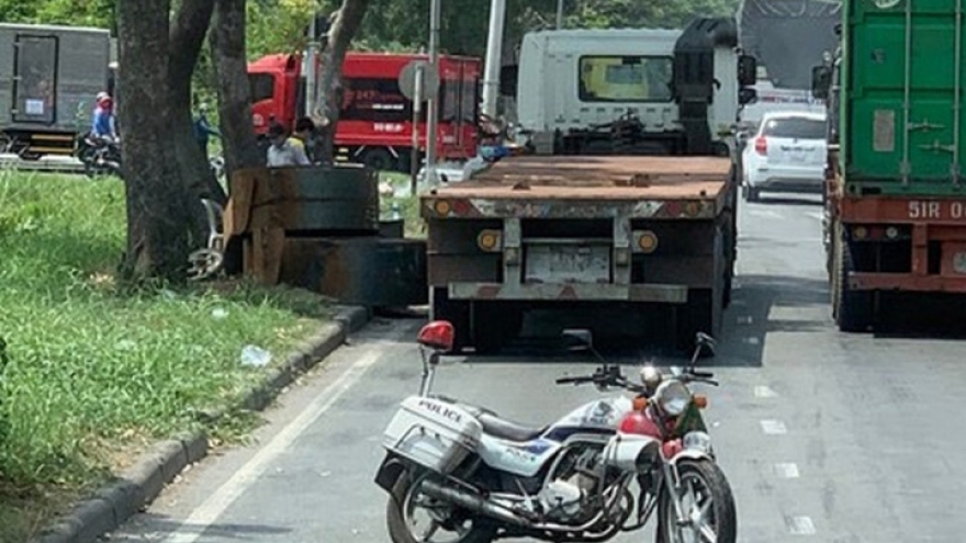 VOV.VN - Chiều nay (28/3), Công an TP.Dĩ An, tỉnh Bình Dương đang tiến hành điều tra làm rõ nguyên nhân vụ xe đầu kéo cán chết 2 vợ chồng rồi bỏ chạy kéo lê xe máy dưới gầm.