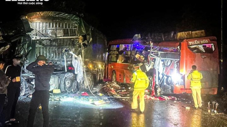 VOV.VN - Cú va chạm cực mạnh giữa một ô tô đầu kéo và xe khách giường nằm trên quốc lộ 6 (Sơn La) vào đêm 21/2 đã khiến 6 người chết, 8 người bị thương.