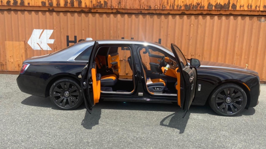 VOV.VN - Chiếc Rolls-Royce Ghost thế hệ mới thứ hai có mặt tại Việt Nam mang phối màu tương tự như chiếc đầu tiên ở bên ngoài nhưng nội thất bên trong khác biệt với da bọc màu cam.