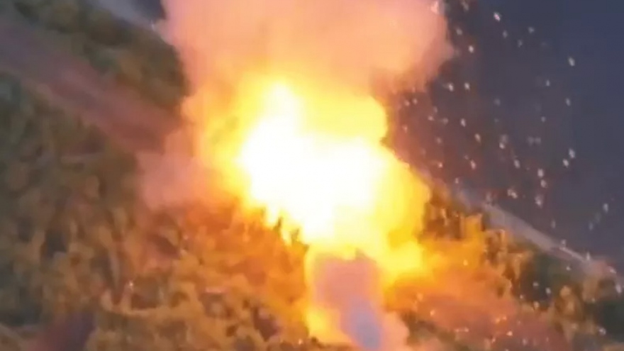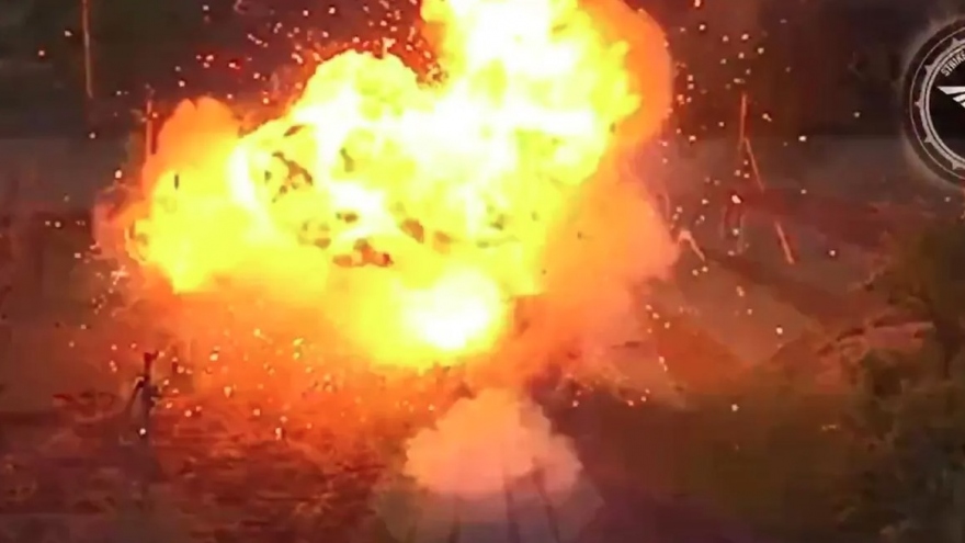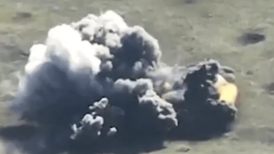 VOV.VN - Đoạn video mới do Ukraine công bố dường như cho thấy khoảnh khắc một máy bay không người lái chứa chất nổ của nước này lao vào chiếc xe tăng Nga được trang bị giáp bảo vệ chống UAV.