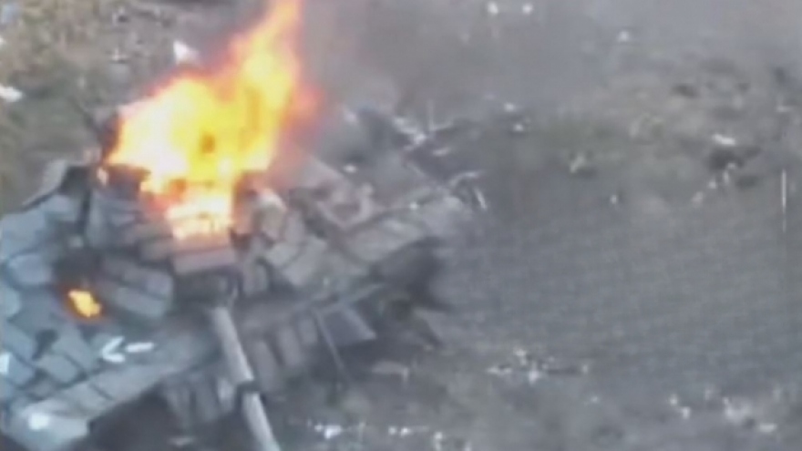 VOV.VN - Trang tin Avia.pro của Nga ngày 10/7 công bố video cho thấy một loạt xe tăng của Ukraine đã bị bốc cháy dữ dội sau khi bị trúng mìn và tên lửa của Nga.
