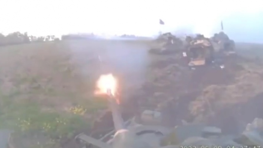 VOV.VN - Bộ Quốc phòng Nga ngày 22/6 công bố đoạn video máy bay không người lái (UAV) cảm tử Lancet của Nga tấn công xe tăng T-64M Bulat của Ukraine ở khu vực Donetsk.