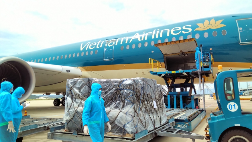 VOV.VN - Sáng 4/9, Vietnam Airlines vừa tiếp tục vận chuyển thành công 180.000 bộ kit xét nghiệm nhanh Covid-19 từ Đức về đến sân bay quốc tế Cam Ranh (Khánh Hòa).