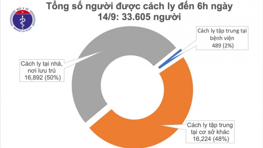 Sáng 14/9 không có ca mắc Covid-19 mới, cả nước có hơn 33.600 người đang cách ly