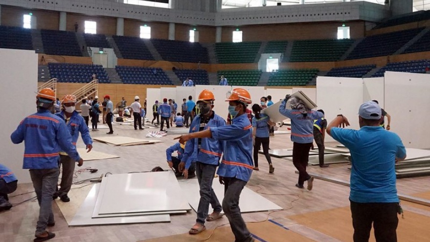 Ảnh: Đà Nẵng gấp rút lắp đặt bệnh viện dã chiến Cung thể thao Tiên SơnVOV.VN - Cơ sở này dự kiến có quy mô 300 giường bệnh để điều trị những ca bệnh nhẹ và sẽ hoàn thành lắp đặt trong vòng 4 ngày.