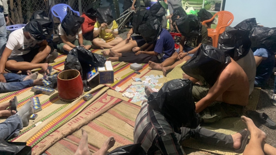 VOV.VN - Ngày 10/2, phòng Cảnh sát hình sự- Công an tỉnh phối hợp Công an thành phố Dĩ An tổ chức triệt xóa một sòng bạc trá hình trong bãi giữ xe ô tô trên địa bàn phường Đông Hòa, thành phố Dĩ An.