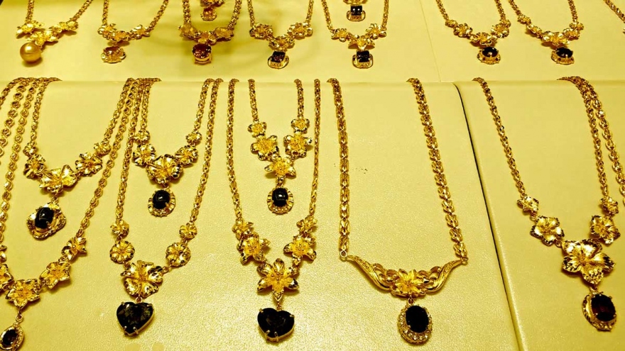 VOV.VN - Sáng 19/5, giá vàng SJC giảm nhẹ về mốc 56,05 - 56,40 triệu đồng/lượng. Giá bán vàng SJC hiện cao hơn 4,32 triệu đồng/lượng so với giá vàng thế giới.