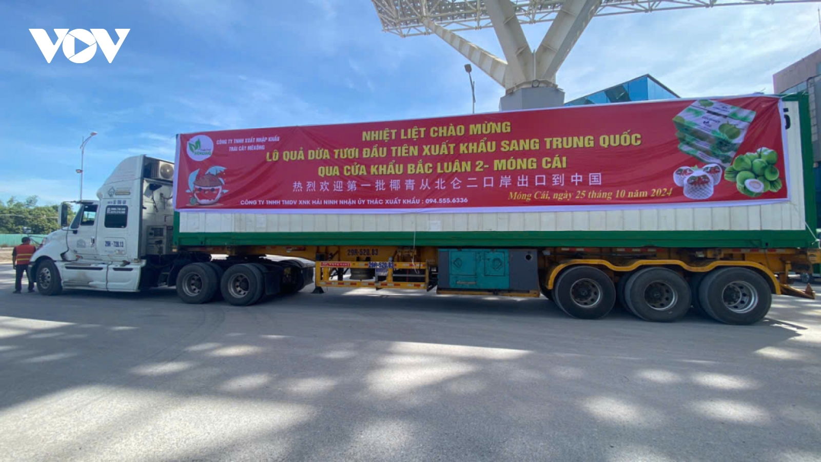 VOV.VN - Ngày 25/10, lô hàng 23,5 tấn quả dừa tươi của một doanh nghiệp Việt Nam lần đầu tiên xuất khẩu sang thị trường Trung Quốc qua cửa khẩu cầu Bắc Luân 2, TP Móng Cái, tỉnh Quảng Ninh.
