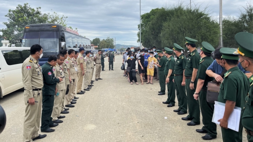 VOV.VN - Ngày 20/9, tại Cửa khẩu Quốc tế Tịnh Biên, Đồn Biên phòng Cửa khẩu Quốc tế Tịnh Biên, Bộ đội Biên phòng tỉnh An Giang phối hợp với các lực lượng chức năng tổ chức tiếp nhận 44 công dân Việt Nam xuất, nhập cảnh trái phép do phía Campuchia bàn giao.