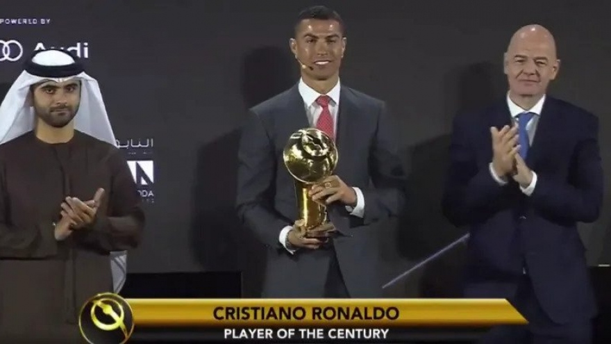 VOV.VN - Tiền đạo người Bồ Đào Nha đã vượt qua Messi và Salah để giật giải "Cầu thủ xuất sắc nhất thế kỷ" tại Lễ trao giải Globe Soccer diễn ra ở Dubai.